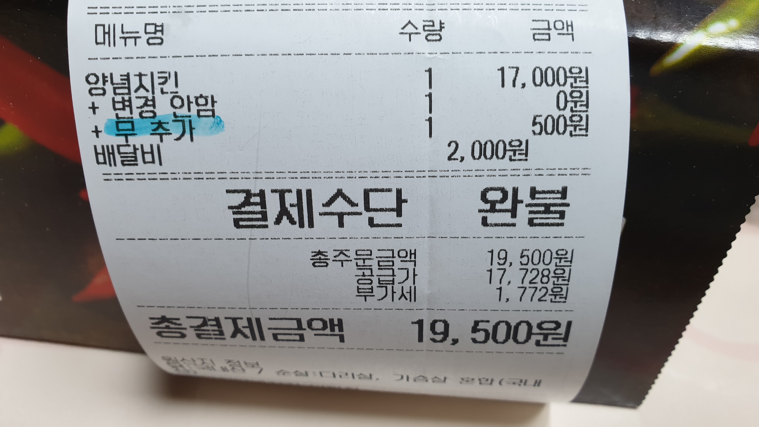 그걸 다 쓸려면 주문을 따로해야 했기에 한번은 양념치킨..