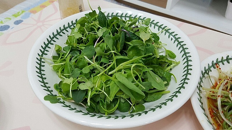 유자 드레싱을 뿌린 새싹 샐러드 입니다.