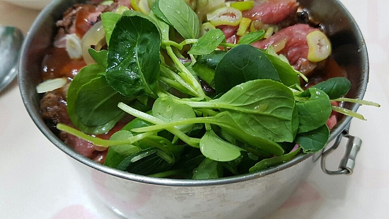 동네 마트를 들러서 파채와 새순 그리고 한우 안심 460g짜리를 사들고 돌아왔습니다.