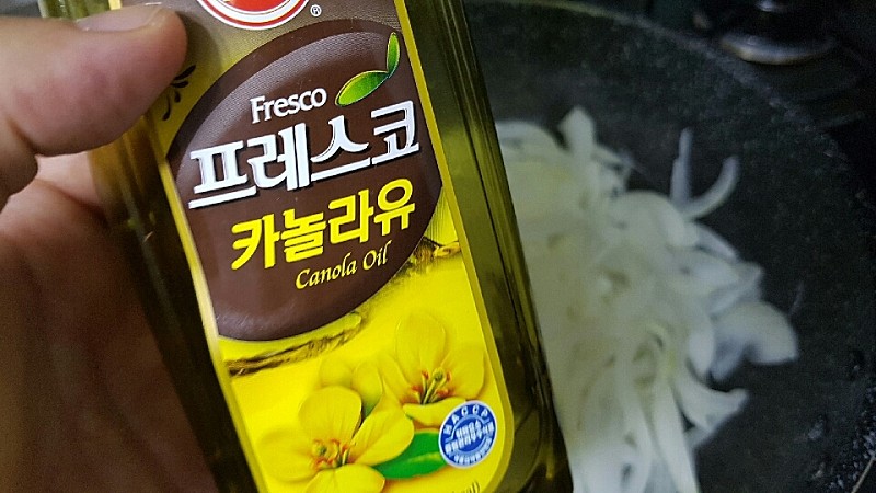 그리고 숨죽은 양파가 담겨있는 웍에 식용유 세 큰술..