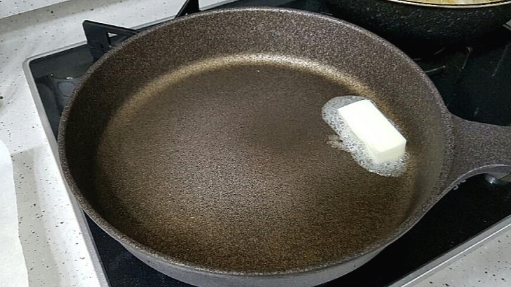 후라이팬을 가스불 위에 올리고 달궈줍니다.