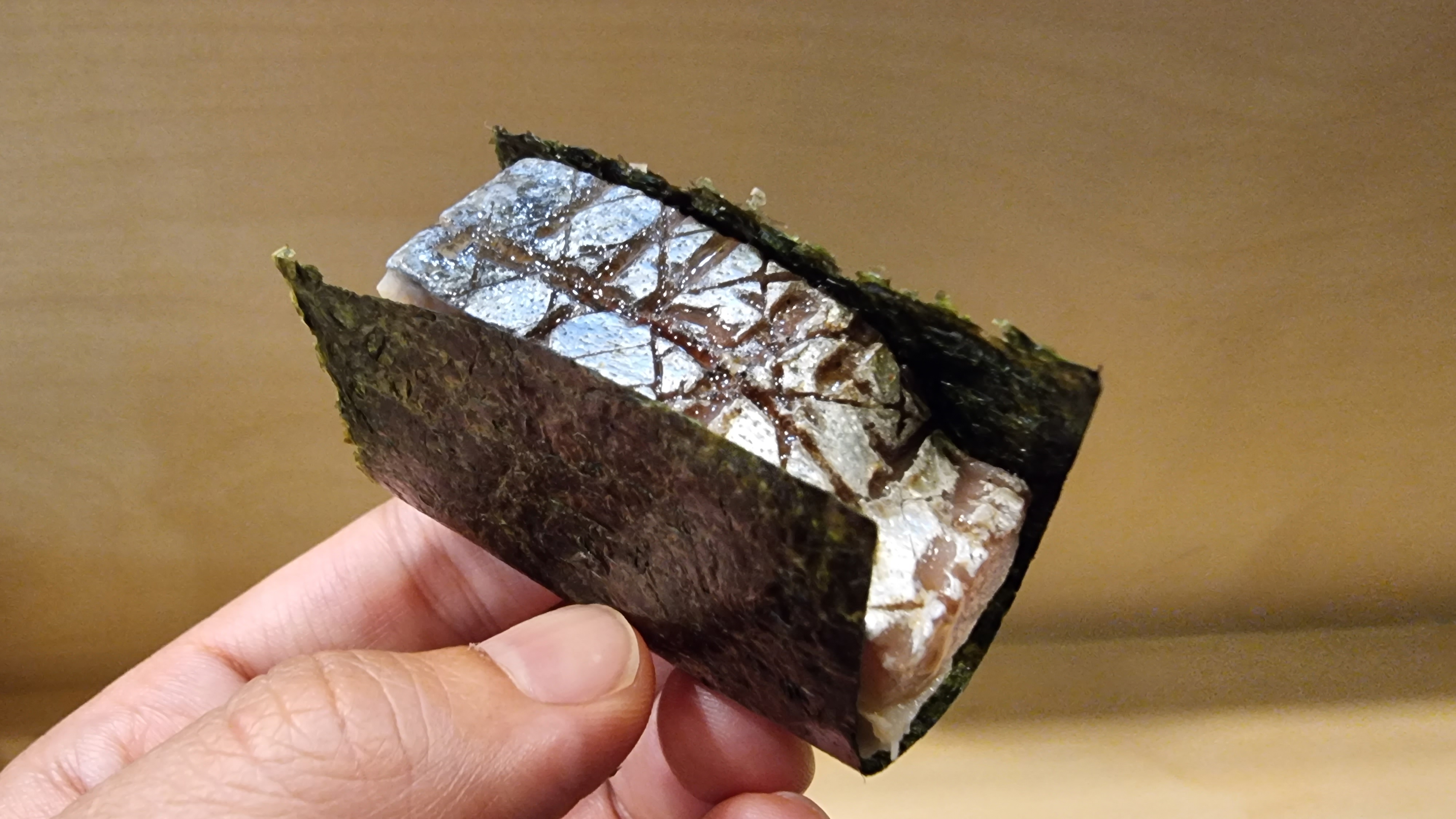 김에 쌓여진 눅진한 고등어가 김향과 함께 입에서 주는 고소함이 아주 일품이었던 초밥입니다.