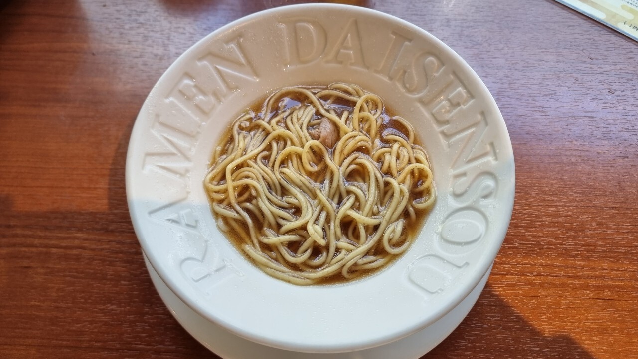 차슈를 다 먹으니 라면 그릇에 "라멘 다이센소오"가 영문으로 보였습니다.